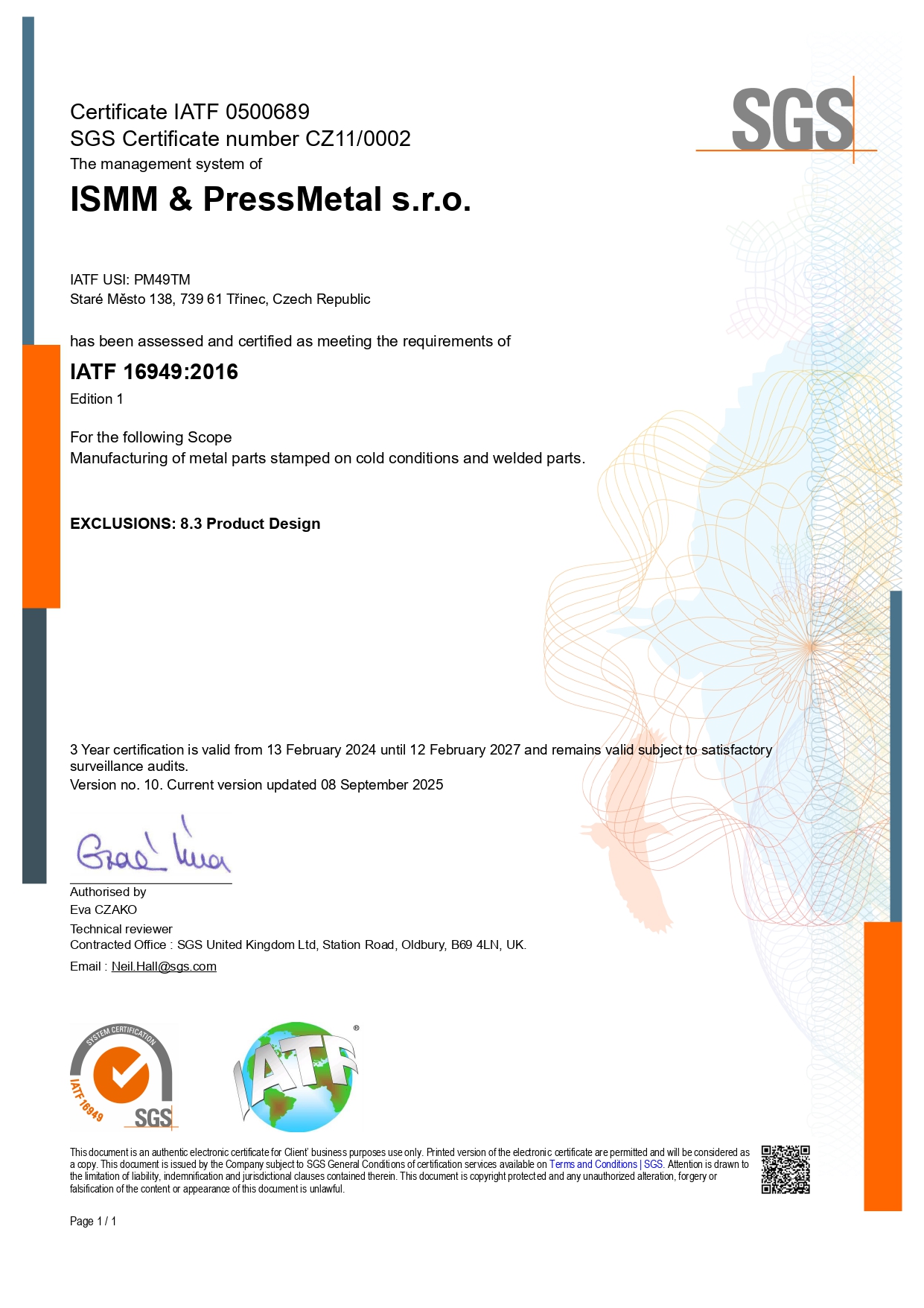 V naší společnosti je jednou z hlavních technologií lisování kovů za studena, pro tento účel disponujeme klasickými a CNC výstředníkovými lisy, pro něž používáme postupové střižné nástroje.